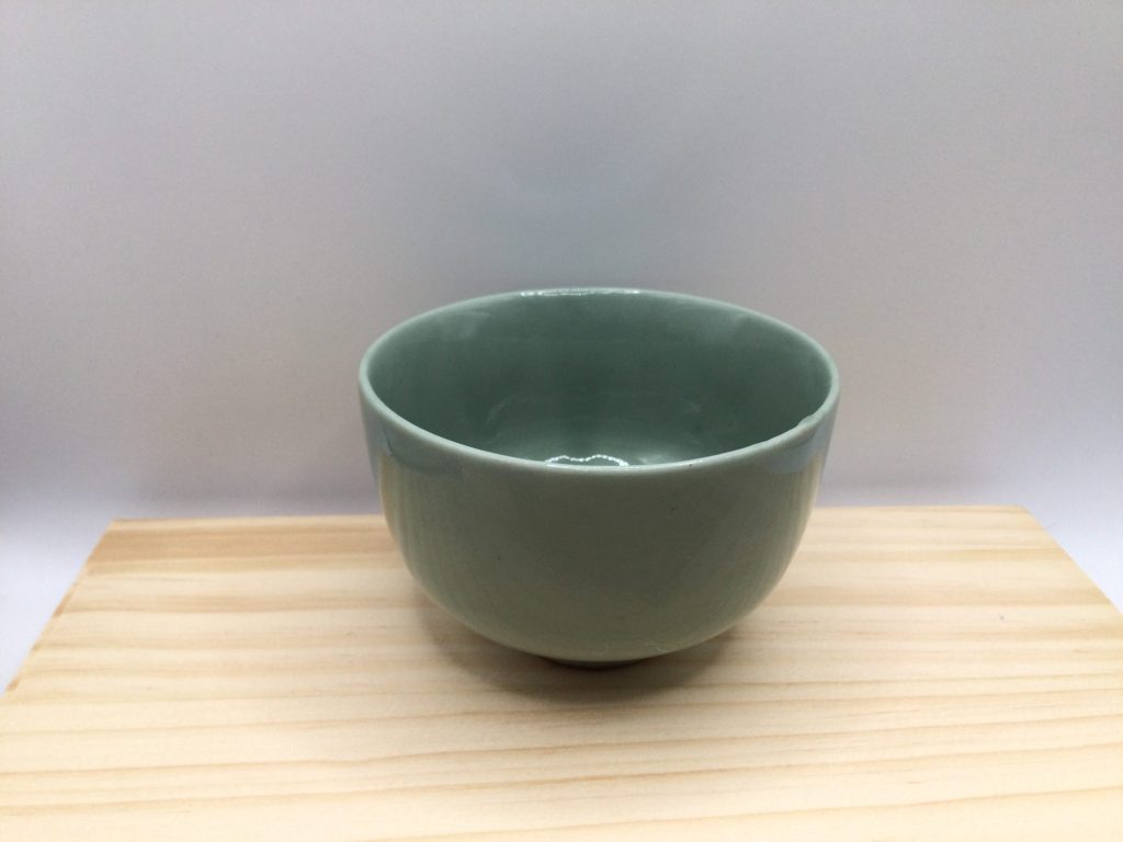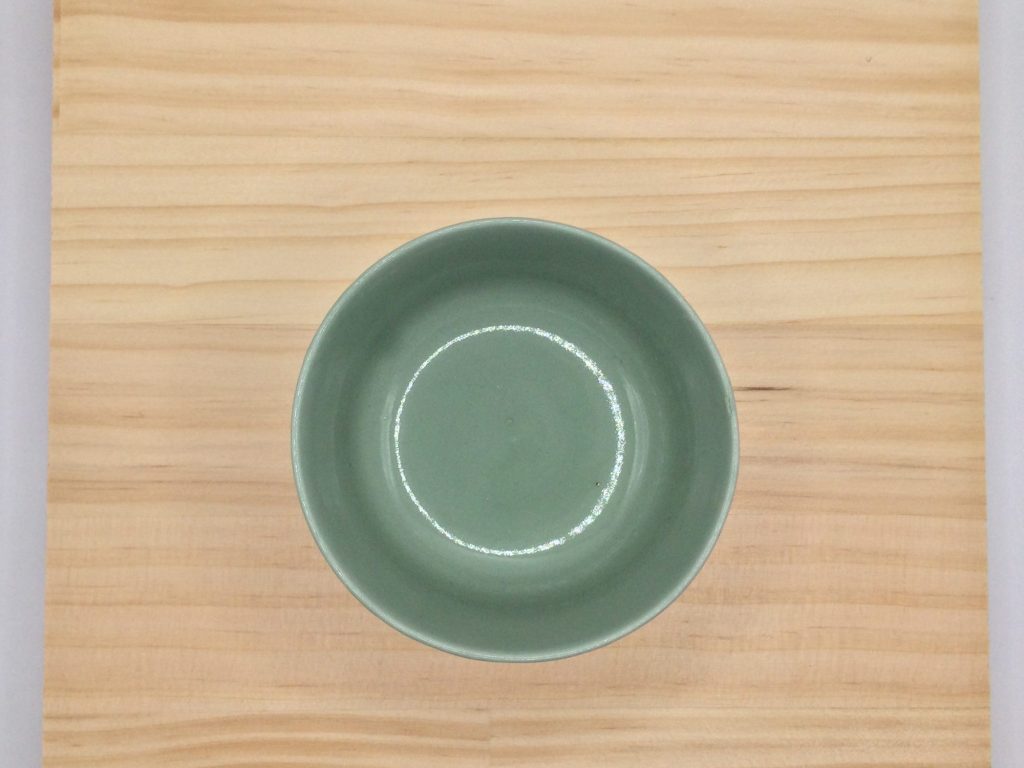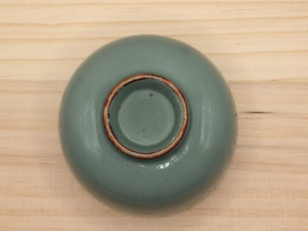 日本がバブルの真っ只中だった80年代半ば、その反動なのか江戸情緒を残した東京の谷中、根津、千駄木界隈、通称“谷根千“が静かなブームとなっていました。上野の美術館に行った帰り、わざわざ遠回りして東京藝大の裏道を散策する道すがら、下町レトロなカヤバ珈琲に立ち寄り一服、 山手線の内側とは思えない静かな佇まいの寺町を抜け、菊見煎餅、いせ辰を過ぎると千駄木団子坂下に行き当たります。護国寺方面への坂の登り口に古物屋を一軒見つけ立ち寄りました。店先に雑然と積まれた古物の中から今回の器を引き当てました。一つは青磁の小碗でその翡翠の様な少しグレーがかった深い釉調に目を引かれました。ぐい呑みというよりは茶器といった大きさで何に使われていたのか興味が尽きません。見立ての妙で酒に良し、茶に良し。