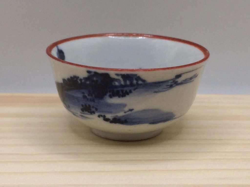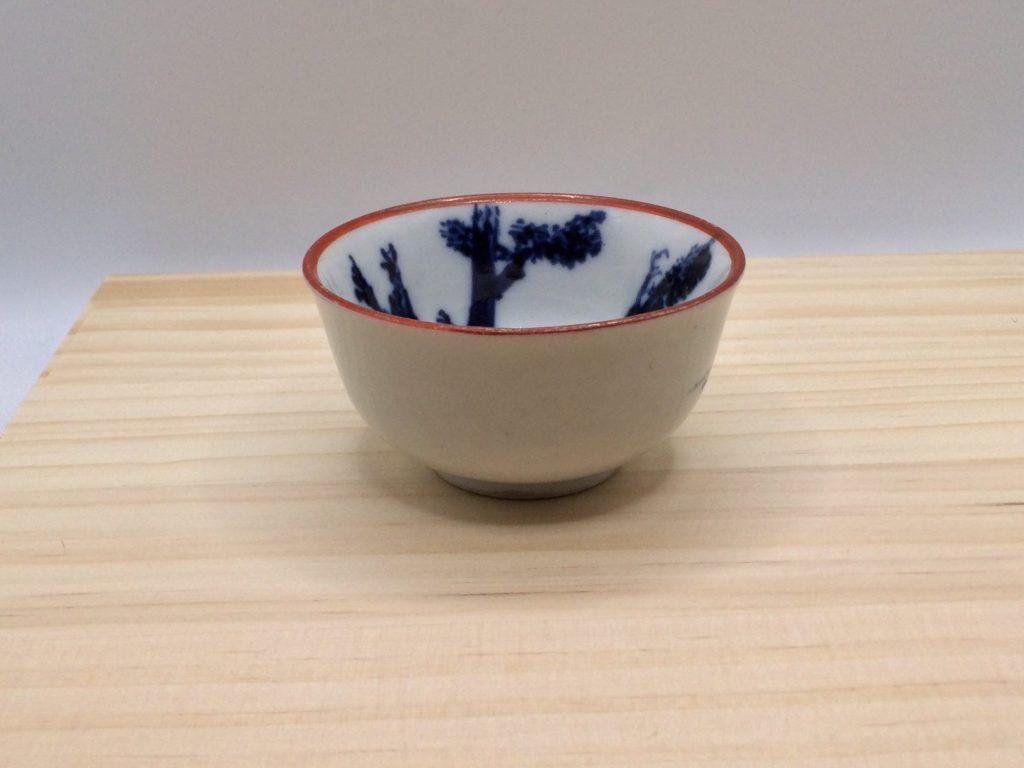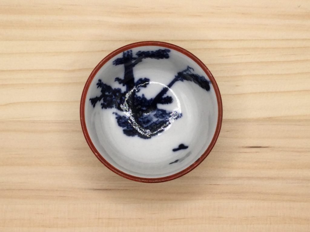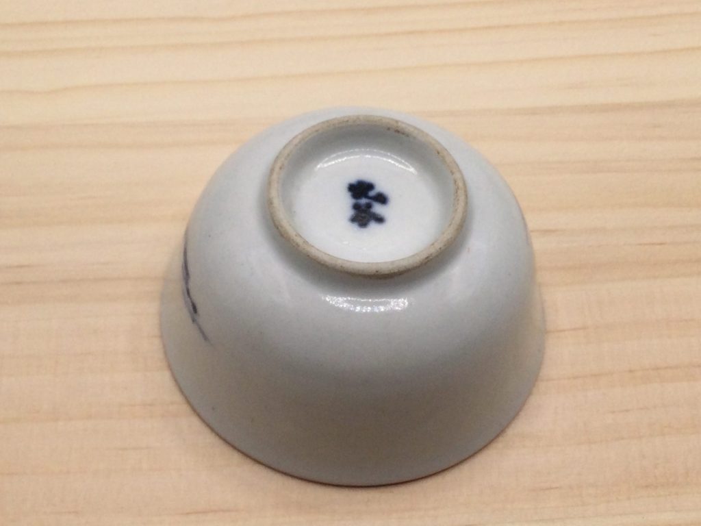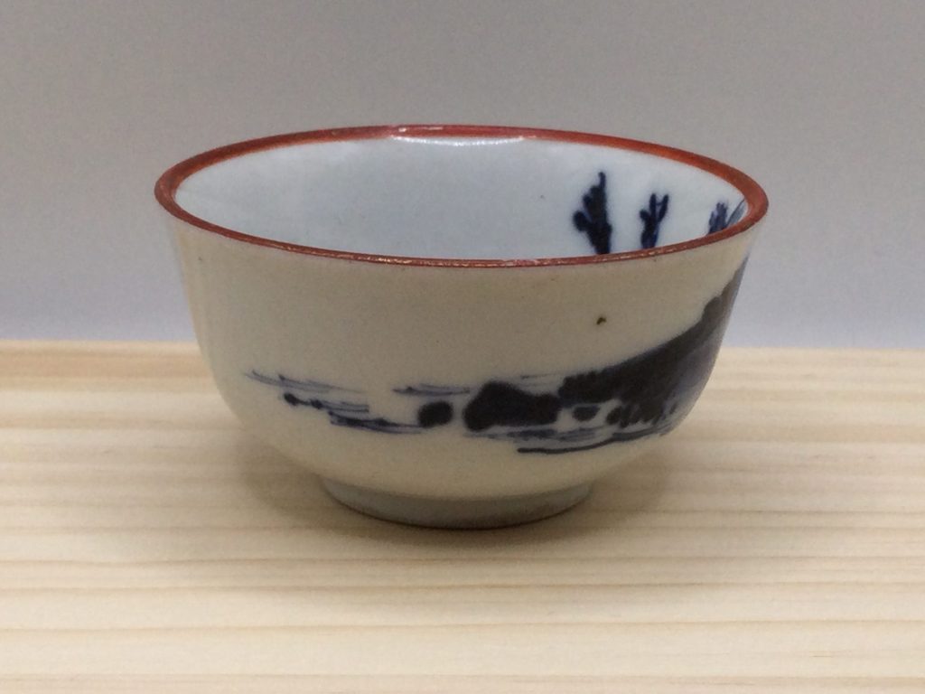 もう一つは九谷と銘の入った明治以降の盃ですが、白磁の上からデルフト様の乳白色の釉を掛け、その上に手書きと思われる呉須で、外に海浜風景、見込みに松と鳥が描かれています。その洒脱で景の大きな構図、濁った白の余白に濃い呉須のコントラストが気に入り、格安で良い買い物をしました。後年、再度立ち寄った際にはもう店の姿はありませんでした。江戸情緒を残した下町で何故か懐かしい風情を持った器と出会いました。