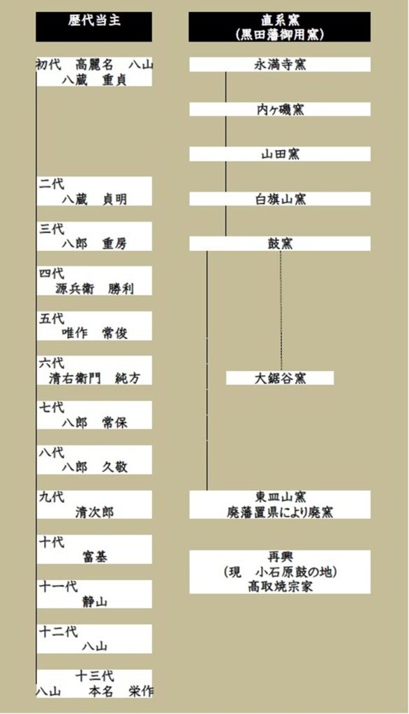 ●髙取焼直系窯変遷図・系図 黒田藩御用窯