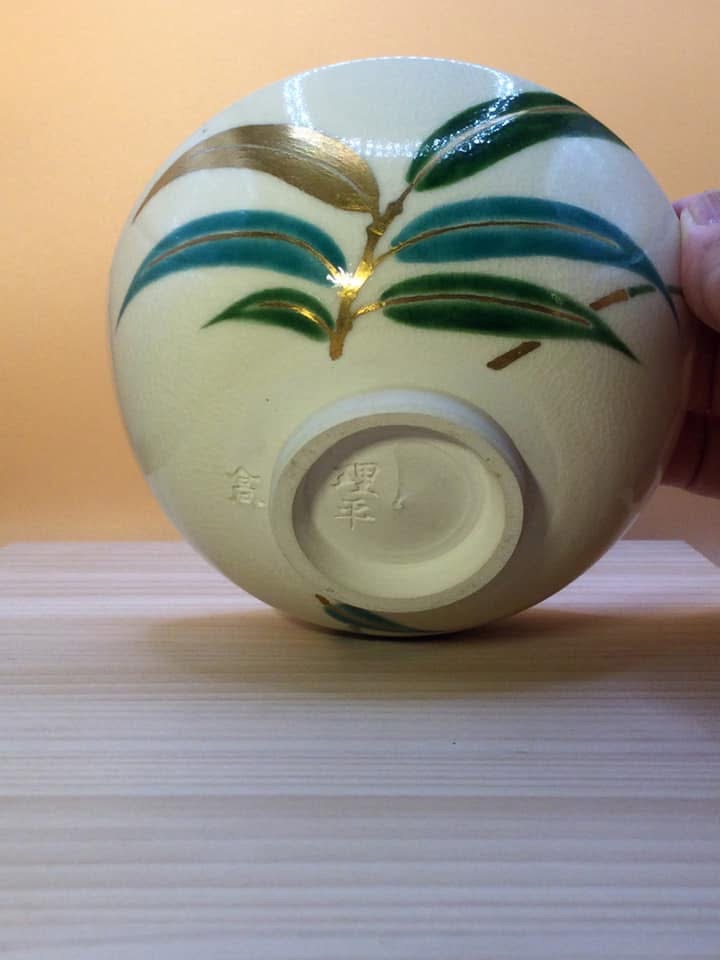 理平焼(*2)は高松藩御庭焼として今日に至る雅な京焼系色絵茶陶です。栗林公園北門前の閑静な住宅地にあり、当時は目立った印もなく、ようやく探し当てました。十四代紀太理平洋子氏が出迎えてくださいました。十三代理平克美氏が48歳で早逝され、京都より嫁がれた洋子氏の40歳からの奮闘は如何ばかりかとお察しいたします(現在、ご長男信吾氏が十五代に向けてご修行中のようで安堵)。伺った時は生憎作品も少なく、ぐい呑みは無く、茶碗をいただいて辞しました。